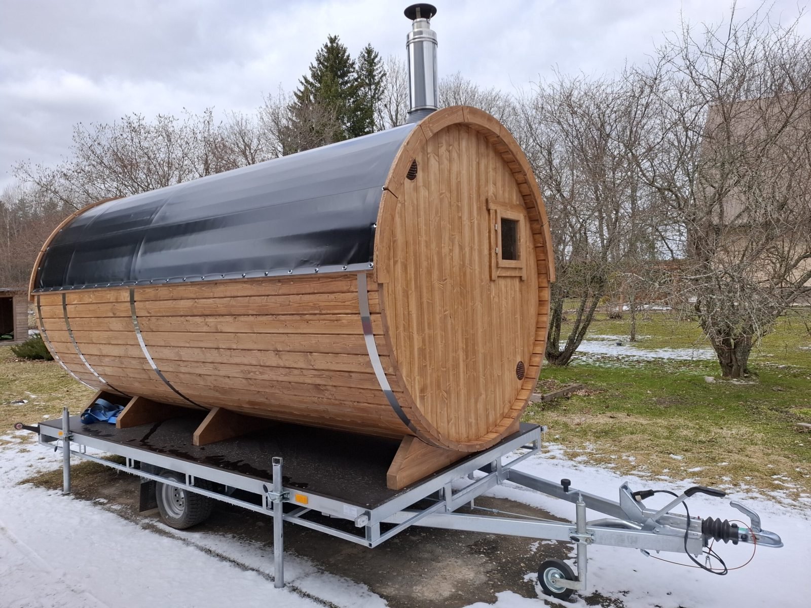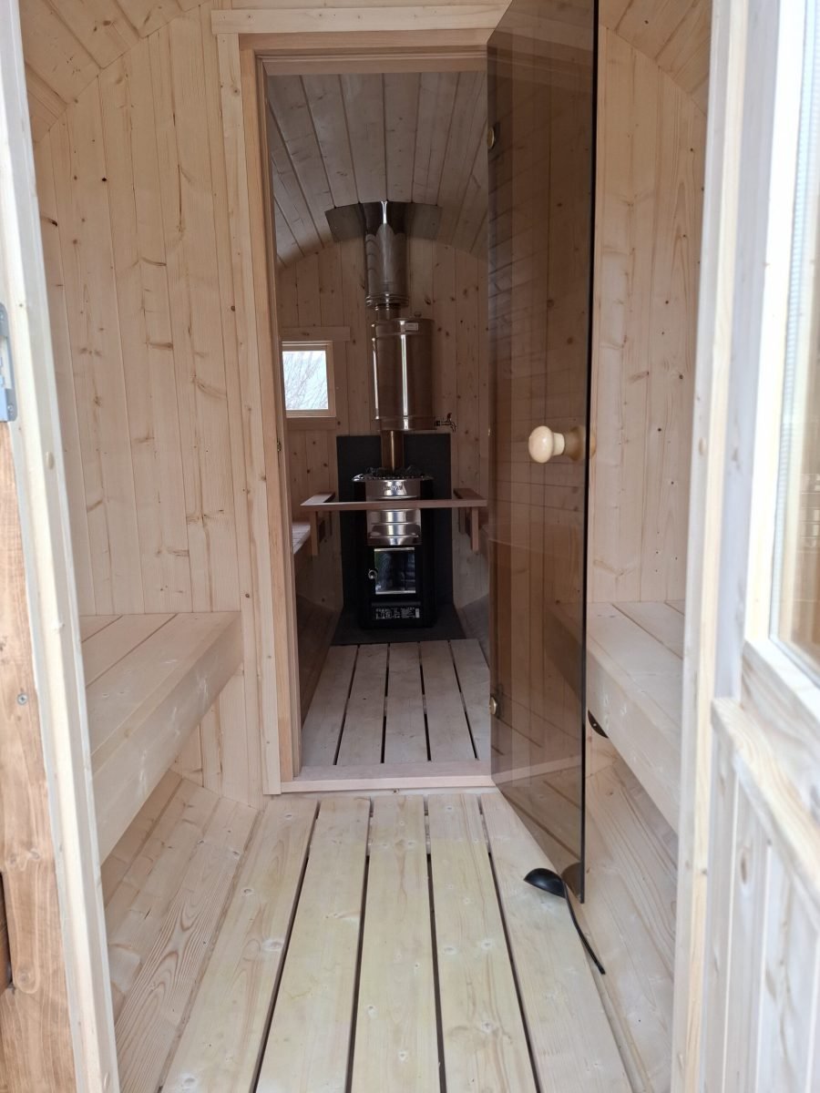 Leilisaun on 4m pikk, väikse terrassi, eesruumi ja saunaruumiga. Sauna mahub 6-8 inimest. Sauna transpordiks ei ole vaja kärulube. Sauna kütmiseks kulub 1.5-2h.