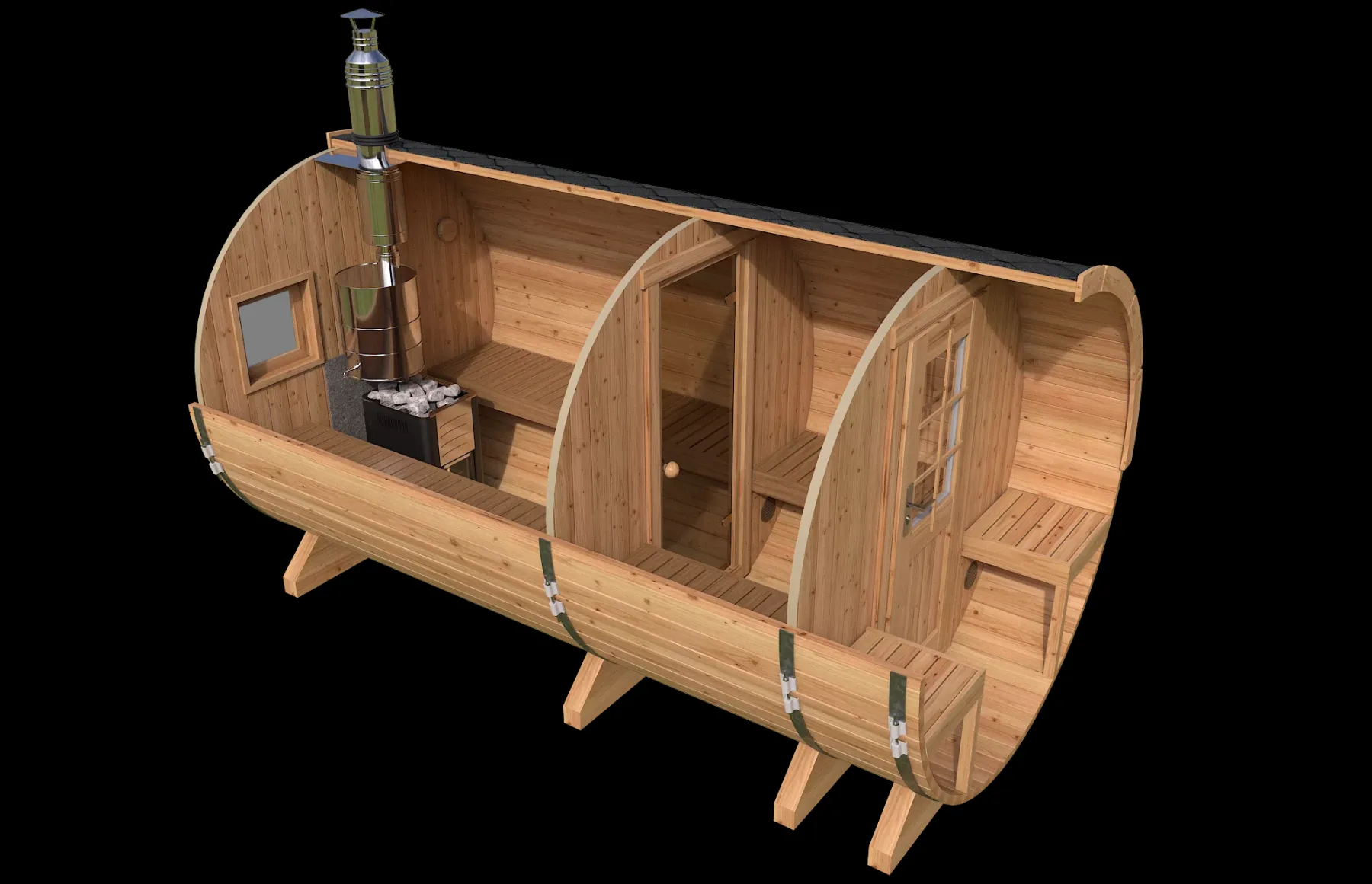 Kümblustünn on 2,4×1,8m suur. Mahutab 1800l vett ning on sügavuselt selline, et õlad ei jää veest välja. Kümblustünn mahutab 7-10 inimest. Tünn on varustatud LED tulede ning mullisüsteemiga. Kütmiseks kulub ca 3,5-4,5h. Transpordiks ei ole vaja kärulube.